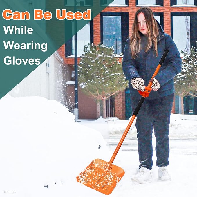 - Ergonomic & Labor-Saving Design: Featuring a 69-inch adjustable handle and a comfortable handle, this snow shovel is engineered to reduce back strain and fatigue. The ergonomic design promotes a more natural shoveling posture, making this shovel for snow a must-have for comfortable and efficient clearing.
