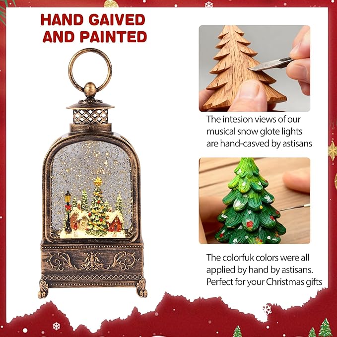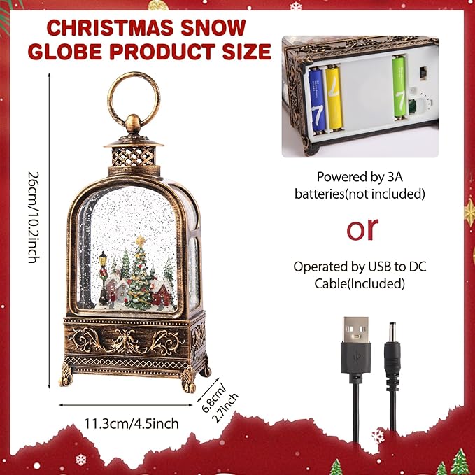 - Your Perfect Christmas Decoration: This Snow Globe Christmas is made of high end resin, exquisitely compact and well made. Turn on the light decoration, the crystal clear snowflakes keep tumbling in the lantern, creating a warm and lively festive atmosphere. The fine craftsmanship, cute design and gift box make the snow globe lantern decoration perfect as a gift choice and also a great product for home decoration to create a warm and lively festive atmosphere.