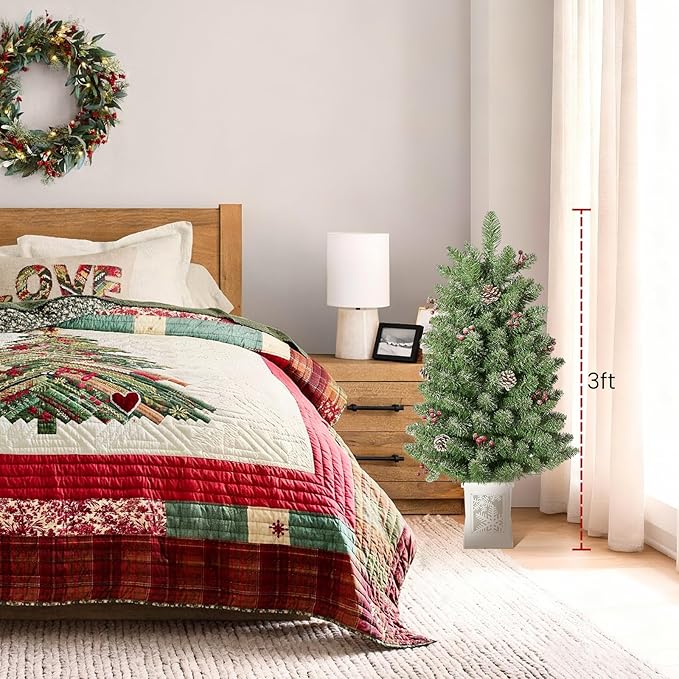 - Great for Smaller Places:The mini Christmas Tree is the perfect size for small apartments or places where you don't have much space to display a large tree,like an entryway or apartment corner.Decorative elements include red berries, and pinecones.As a preferred, classy Christmas tree or Christmas gift, It's a amazing idea to send it to your families, children, or friends