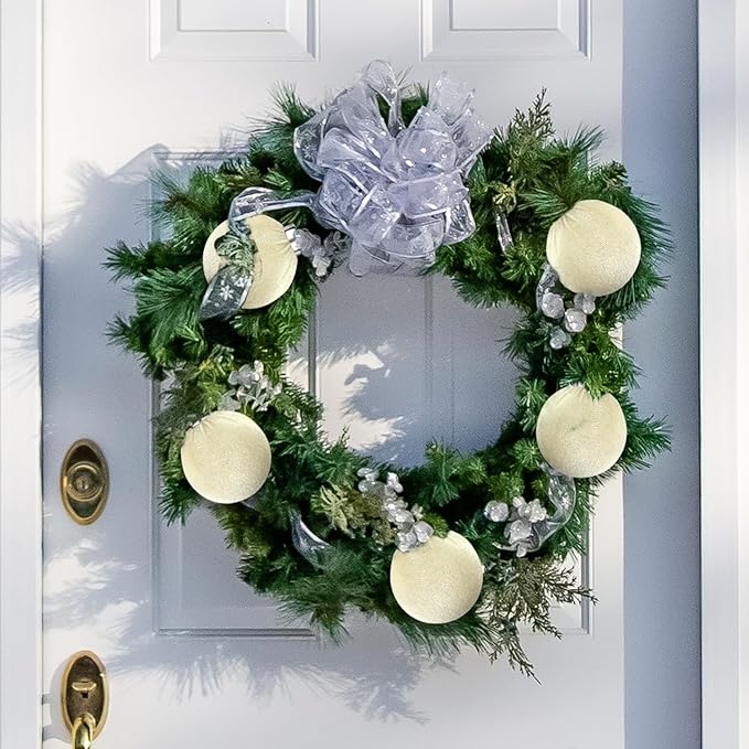 - Beige Velvet Christmas Balls - This earth-toned set includes 15 big ornaments in an elegant beige. Each measures 3.15 inches, striking the perfect balance of scale and sophistication for your Christmas tree.
