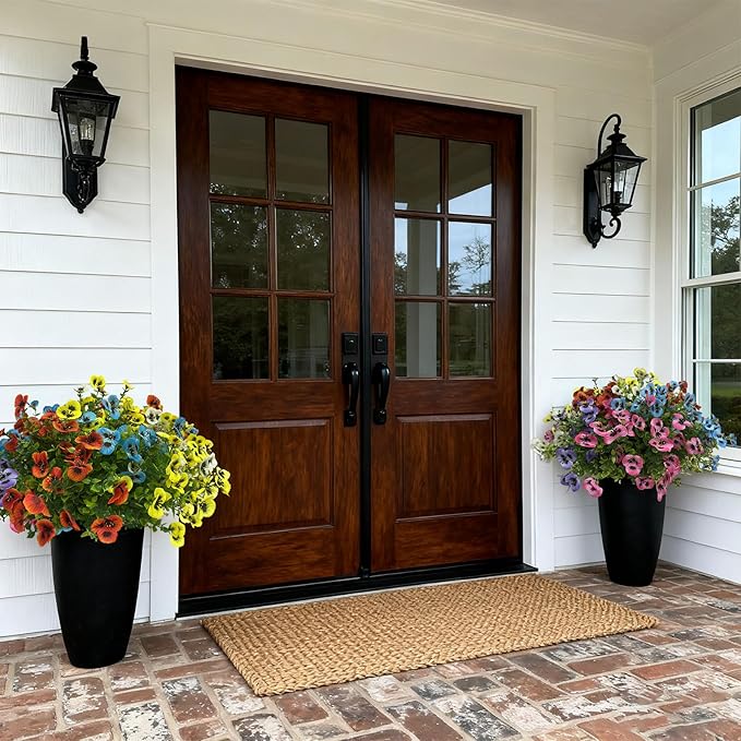 - All Seasons and Occasions: fake flowers are perfect for gardens, patio, balcony, yard, front door, street, planter, hanging basket, window box, and more, these fake outdoor flowers are a versatile addition to any outdoor space. And you can enjoy the beauty of blooming flowers throughout the year, no matter the weather.