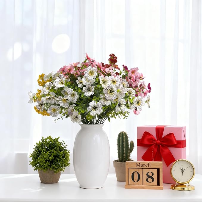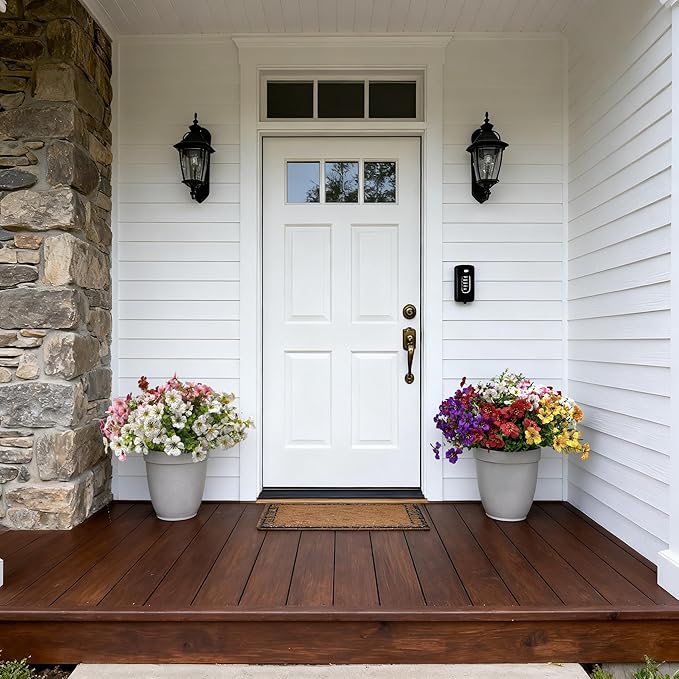 - All Seasons and Occasions: fake flowers are perfect for gardens, patio, balcony, yard, front door, street, planter, hanging basket, window box, and more, these fake outdoor flowers are a versatile addition to any outdoor space. And you can enjoy the beauty of blooming flowers throughout the year, no matter the weather.