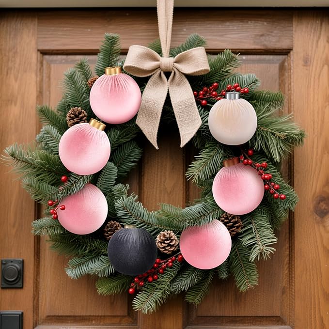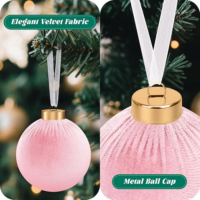 - 【Velvet Design】Our ornaments boast a touch of luxury with their flocked design. High-quality fleece wraps around the Christmas ball, and the top fleece features pleats that add a distinctive and captivating element to your Christmas trees, breaking away from the boring.