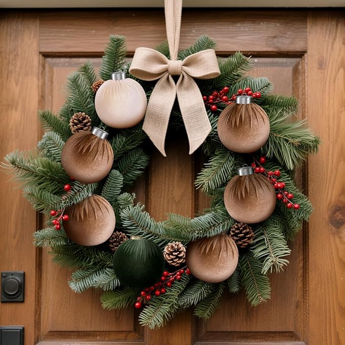 - 【Velvet Design】Our ornaments boast a touch of luxury with their flocked design. High-quality fleece wraps around the Christmas ball, and the top fleece features pleats that add a distinctive and captivating element to your Christmas trees, breaking away from the boring.