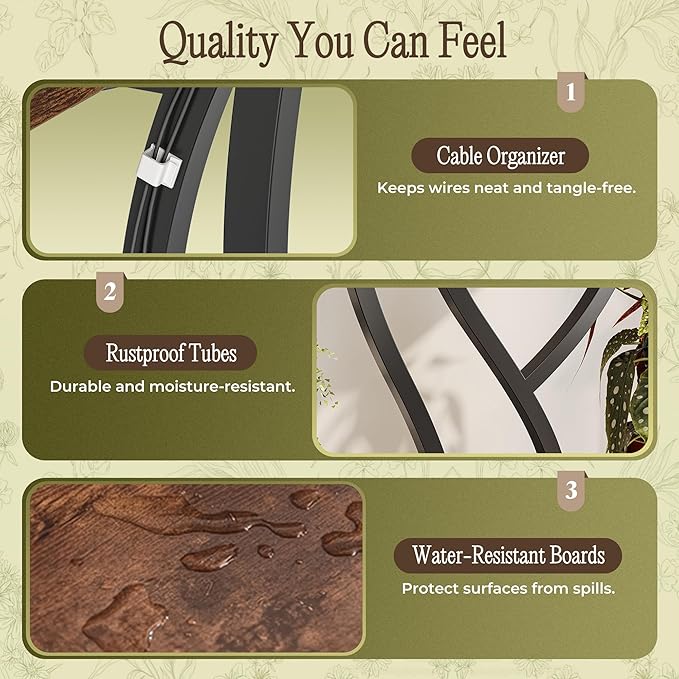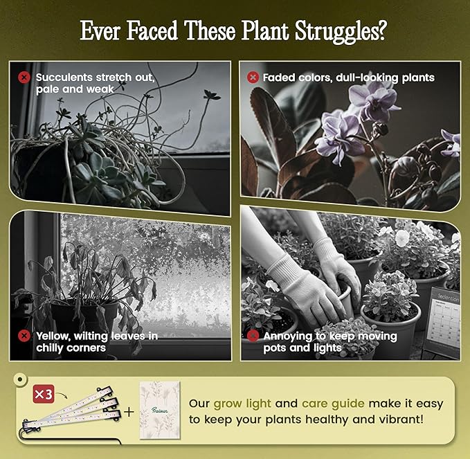 - 【Solid Structure】Comes with cable clips to keep wires neat and organized. Crafted with a strong metal frame and thick wood shelves, this plant stand with grow light stays sturdy and wobble-free, even when fully loaded. The rust-resistant finish and waterproof panels make cleaning a breeze