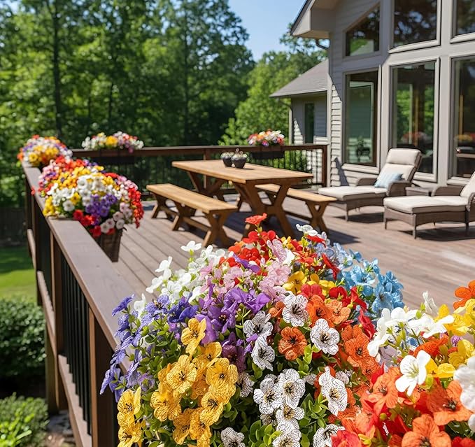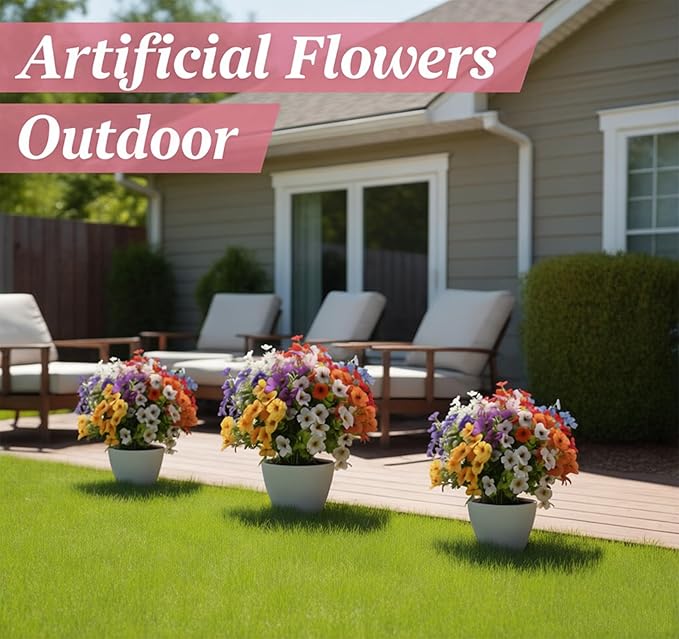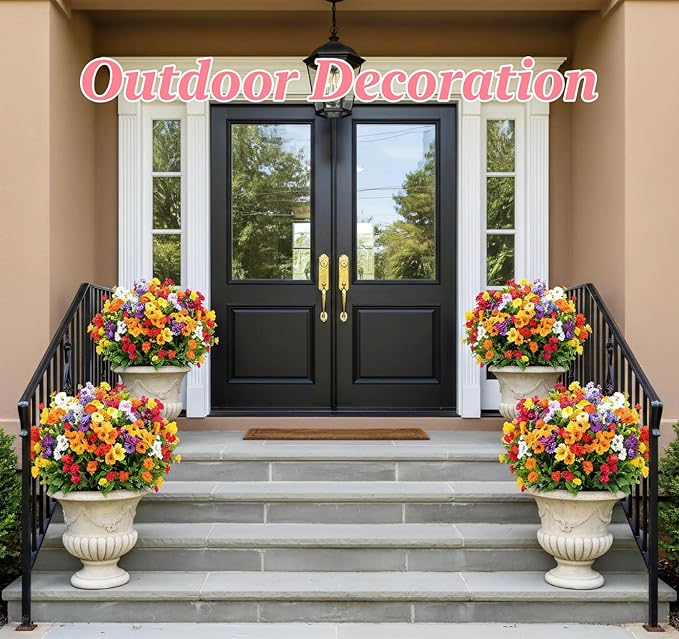 - Effortless & Versatile Decor: Perfect for busy homeowners! These fake flowers plants are ideal for adding year-round color to garden beds, hanging baskets, porch railings, walkways, and patio tables. A simple solution for enhancing your curb appeal.
