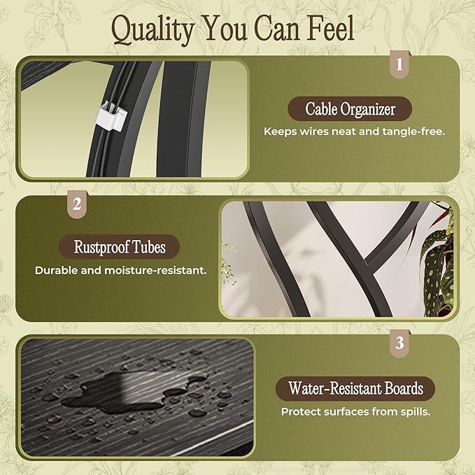 - 【Solid Structure】Comes with cable clips to keep wires neat and organized. Crafted with a strong metal frame and thick wood shelves, this plant stand with grow light stays sturdy and wobble-free, even when fully loaded. The rust-resistant finish and waterproof panels make cleaning a breeze