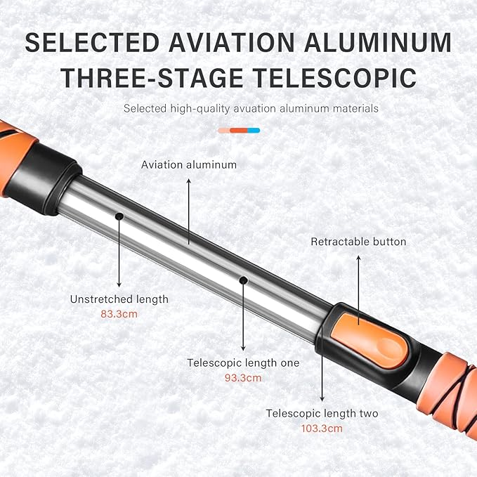 - Non-Slip, Comfortable EVA Grip: The handle is equipped with a thick, comfortable, warm foam grip. Easy to assemble and disassemble. Conveniently stored inside your car or trunk.le.