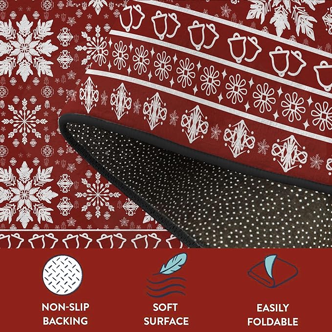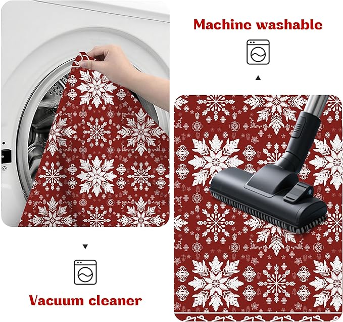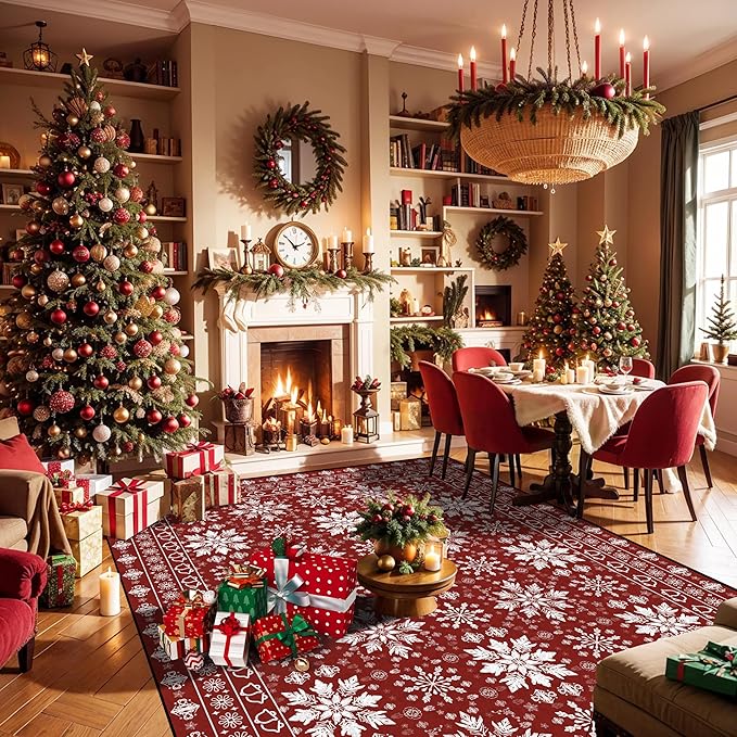 6' X 9' Christmas Rugs Snowflake Area Rug Indoor for Living Room Bedroom Dining Room Dorm Classroom Nursery Red and White Xmas Carpet for Kids Girls Women Floor Mat Pad Winter