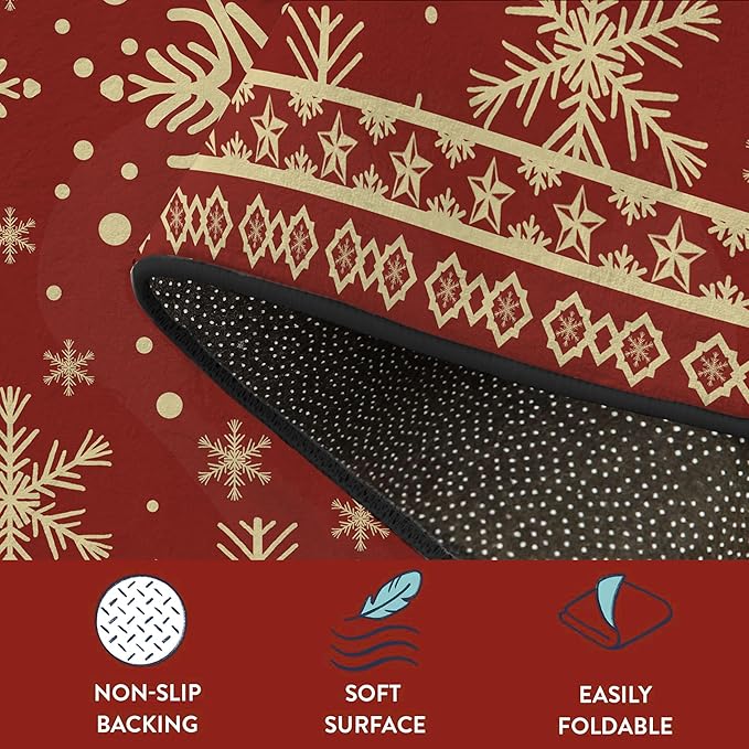 5' X 7' Christmas Rugs Indoor Snowflake Area Rugs for Bedroom Living Room Dining Room Nursery Dorm Classroom Vintage Xmas Carpet for Kids Girls Women Floor Mat Pad