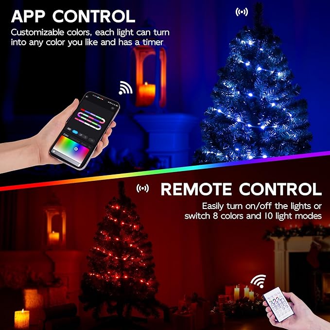 - 🎄Smart RGB Lights: Equipped with 80 smart RGB lights (Batteries not included) that can be controlled via an app, this tree offers endless customization options. Enjoy a wide range of colors and lighting effects to match your mood or occasion, enhancing the ambiance of your home effortlessly