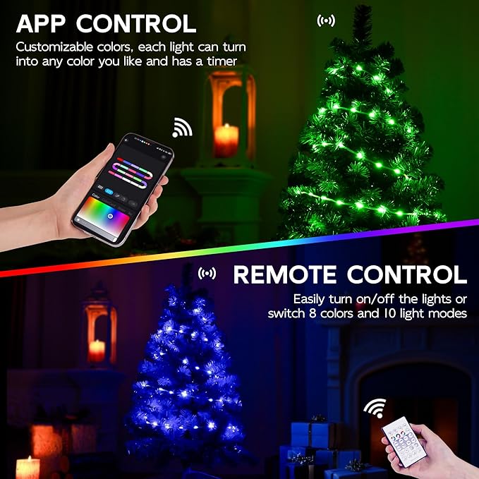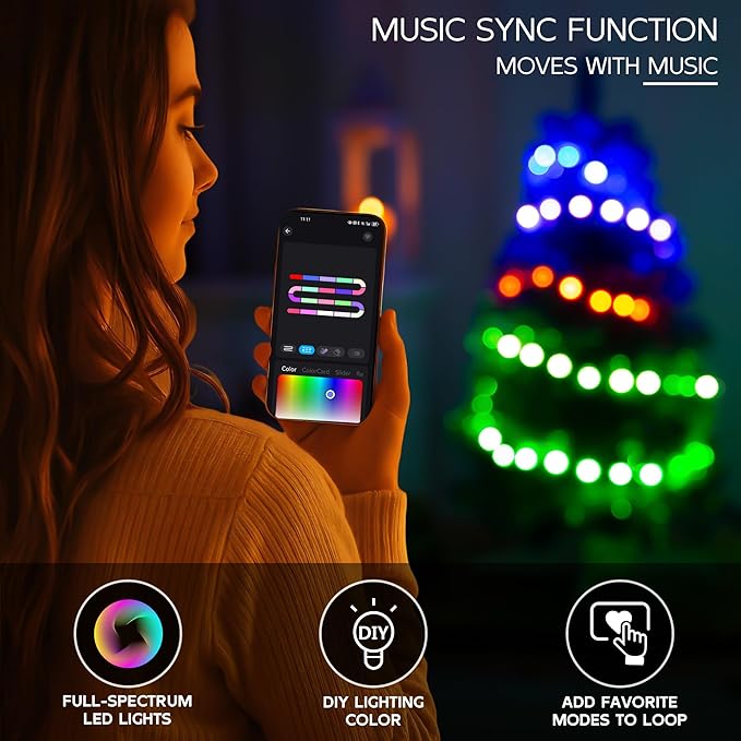 - 🎄Smart RGB Lights: Equipped with 80 smart RGB lights (Batteries not included) that can be controlled via an app, this tree offers endless customization options. Enjoy a wide range of colors and lighting effects to match your mood or occasion, enhancing the ambiance of your home effortlessly