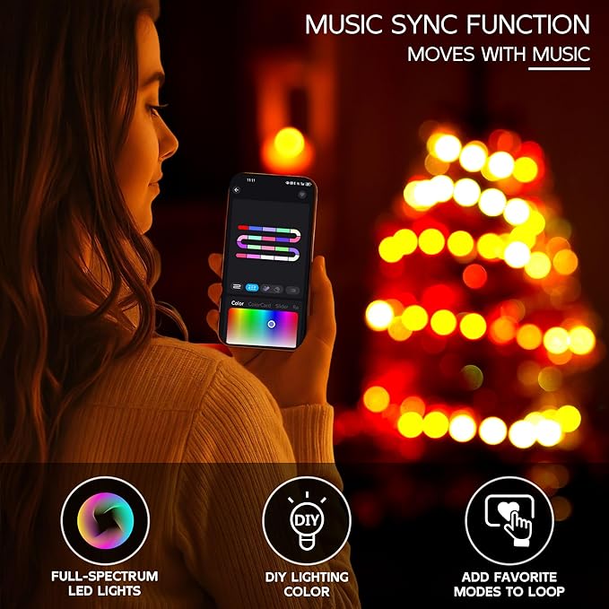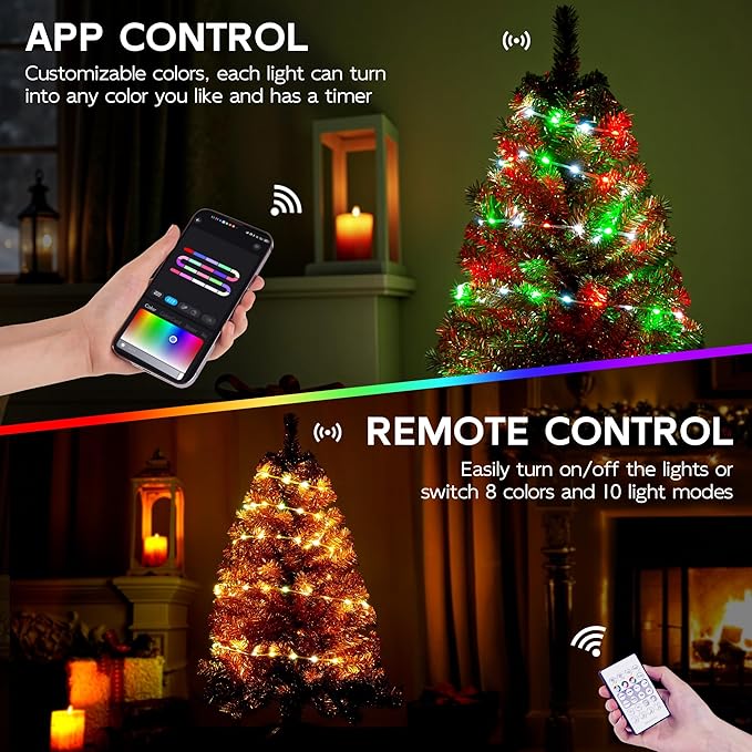 - 🎄Smart RGB Lights: Equipped with 80 smart RGB lights (Batteries not included) that can be controlled via an app, this tree offers endless customization options. Enjoy a wide range of colors and lighting effects to match your mood or occasion, enhancing the ambiance of your home effortlessly