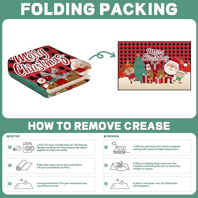 • [ ANTI-SLIP BOTTOM]: Small anti-slip grip dots at the bottom of the Merry Christmas Rug, which helps prevent it from sliding on your floor. Non-slip, non-fading, non-shedding, water-absorbing, durable.