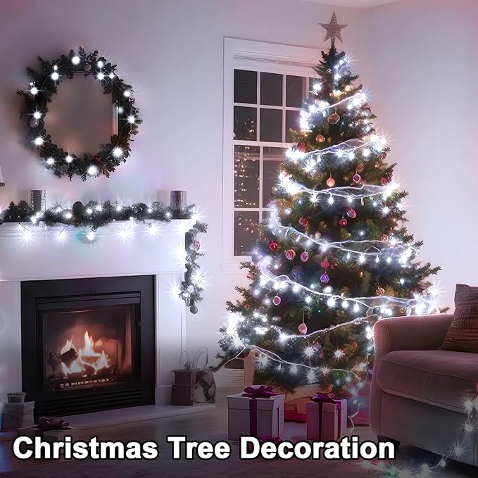 - WIDELY USED AND INDOOR AND OUTDOOR DECORATION: LED Christmas string lights are versatile and suitable for bedrooms, classrooms, terraces, gardens, patios, lawns, Christmas trees and more. Outdoor Christmas lights use super high intensity LED to create soft and bright lights, you can also stick them on the wall and clip photos to turn it into a photo wall.