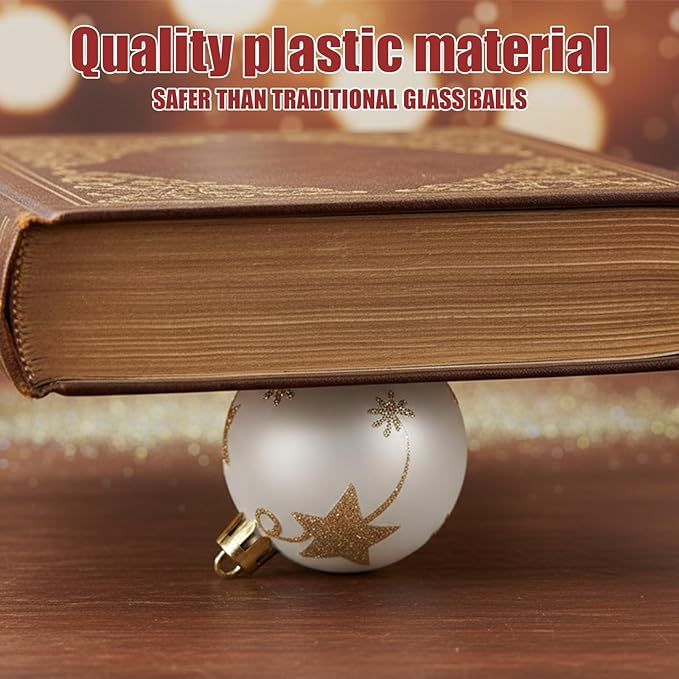 - Durable Material: These shatterproof christmas ornaments are made from durable plastic, making them lightweight, sturdy, and reusable. The strong plastic ensures they won’t break when dropped. Coated with high-quality paint, they resist fading, offering vibrant colors for years. Perfect for decorating your tree or home with festive sparkle