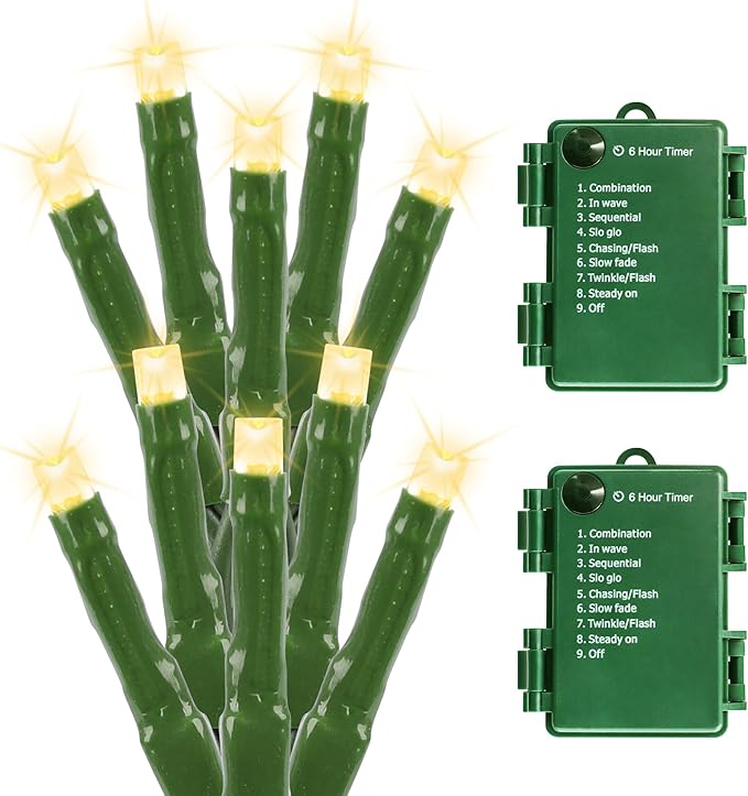 Battery Operated Christmas Lights 33 FT 100 LED Mini String Lights with Timer and 8 Modes for Gardens Courtyards Trees Warm White 2 Pack
