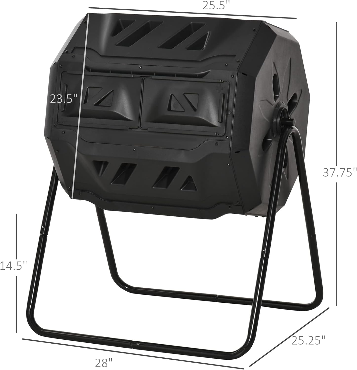 - Spacious Capacity: The Tumbling Compost Bin boasts a generous capacity of 43 gallons, making it perfect for both small and large gardening projects. With overall dimensions of 28''L x 25.5''W x 37.75''H, this compost tumbler is designed for optimal use, maximizing your composting potential.