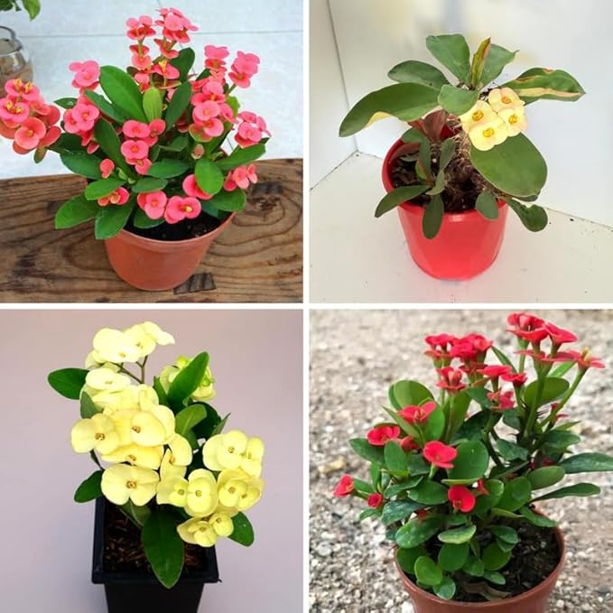 Hardy Crown of Thorn Live Plant, Random Euphorbia Milii Tree, 1 Year Old Plant, 5-10 Inches in Tall, No Pot, Indoor Outdoor Décor Succulent Cactus