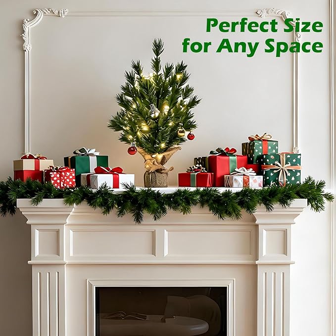 - 【Copper Lights and DIY Decoration】The included warm white string lights meet all safety standards, ensuring your small Christmas tree with lights is not only beautiful but safe for any indoor space.You can decorate tabletop Christmas trees with balls, red berries, pine cones, bells, and ribbons to create unforgettable, warm, heartwarming moments with your family.