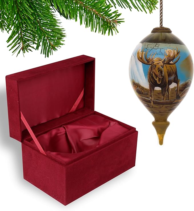 Majestic Moose Ornament – Hand-Painted Glass Christmas Moose Decoration – Moose Ornaments for Christmas Tree – Nature Wildlife Holiday Ornament Gift