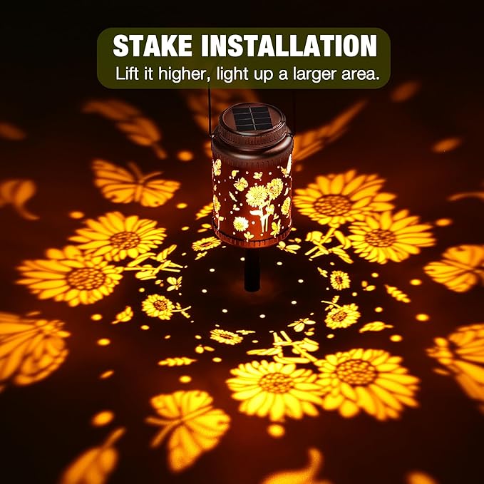 - 《 Storm-Proof & Weather-Ready Design 》Wind, rain, or intense sun — your Sunflower lantern stands firm. The spiral-lock solar lid screws tightly into the frame and won’t loosen even during storms. Reinforced metal detailing and weather-resistant sealing ensure steady, reliable performance season after season.