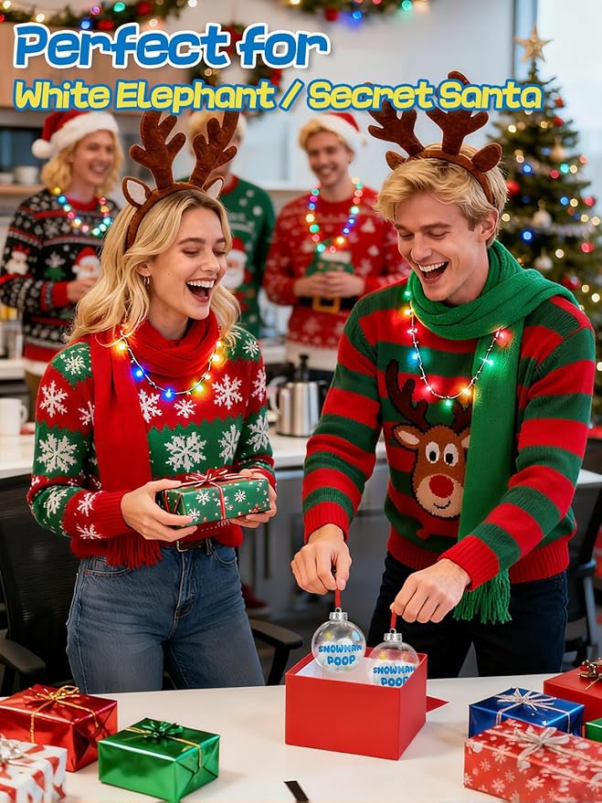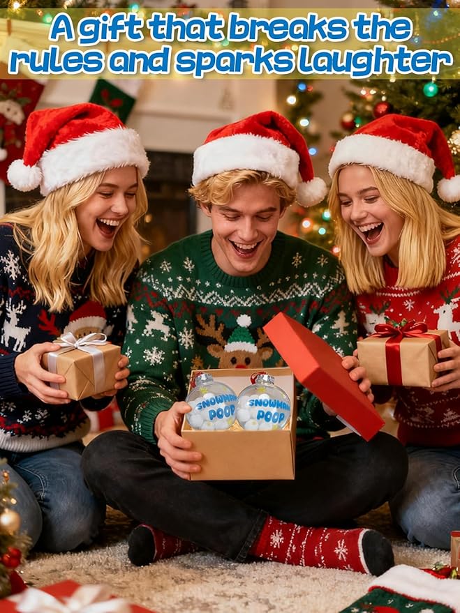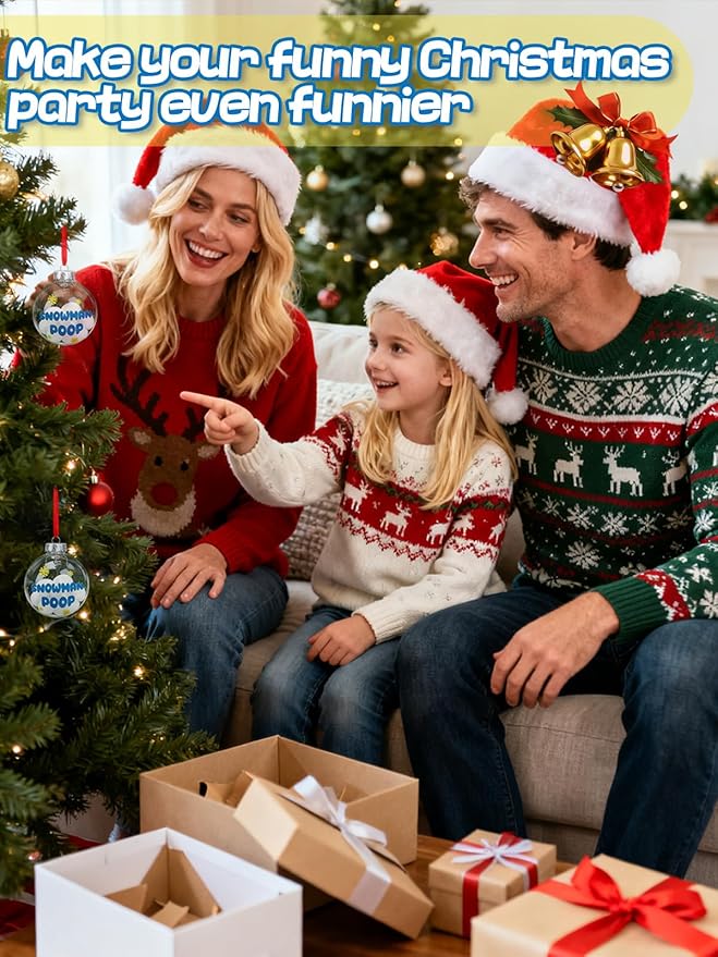 - Fun & Whimsical Design: Printed with hilarious phrases and filled with fluffy pom poms, these 3.2-inch clear Christmas ornaments instantly spark laughter. Reindeer and snowman themes blend perfectly with the holiday spirit, making them the highlight of family gatherings and parties