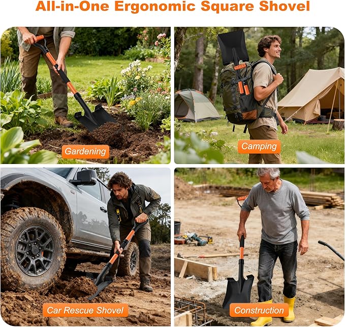 - 【Extra-Wide Foot Step】Our square shovel's wide foot platform supports strong, stable foot pressure. It helps break through packed snow or icy ground efficiently while reducing arm strain during driveway or roadside use