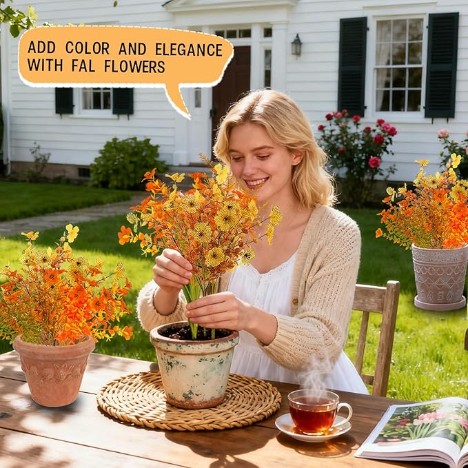 16 Bundles Artificial Flowers for Outdoor/Indoor Decoration, Plants for Outside, Fake Fall Plants. Suitable for Outdoor Flowerbed, Indoor and Outside Decorations (Orange).