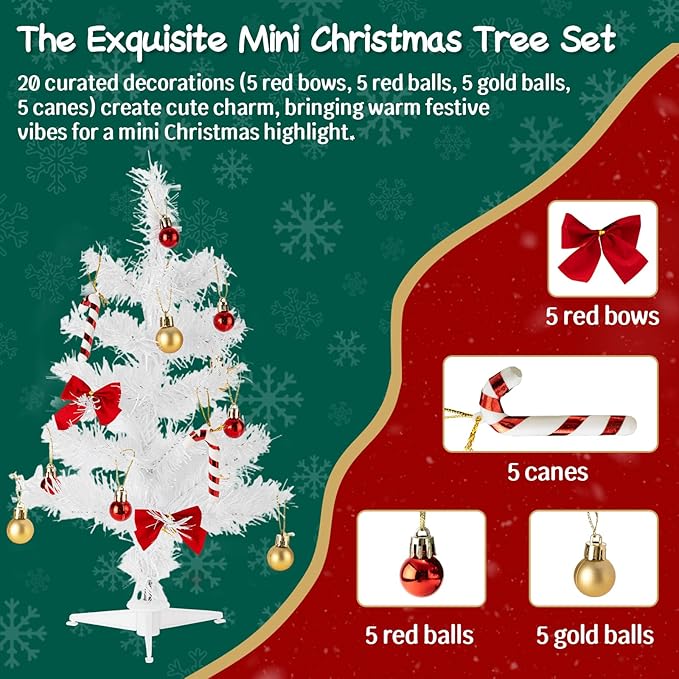 1.5FT Tabletop Christmas Tree, Artificial Mini Christmas Pine Tree with Realistic Branches & Plastic Stand, Small Xmas Tree for Home Office Party Desktop Festival Indoor Decoration, White