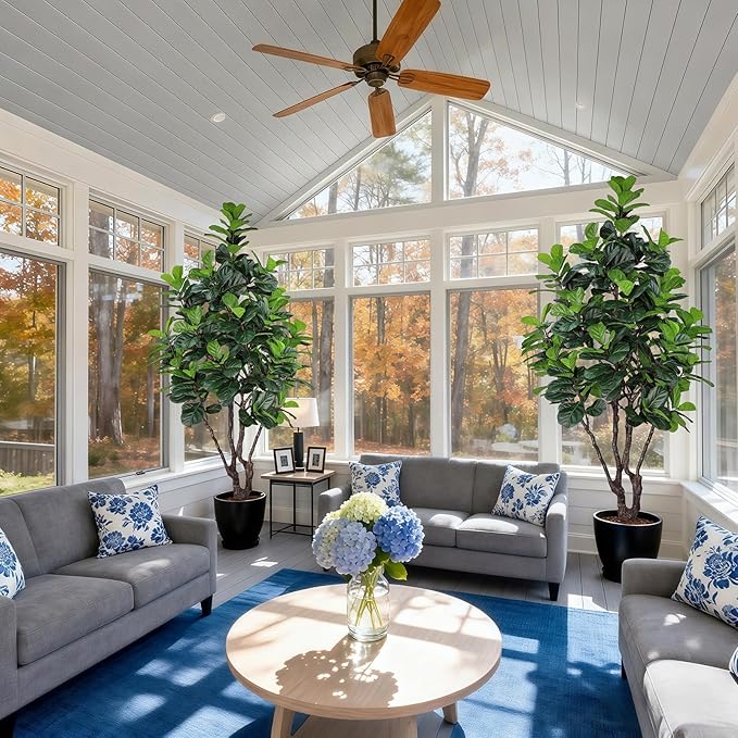 - [All Year Round Decor] The lifelike artificial fiddle leaf fig tree stays lush and vibrant year-round, adding lasting greenery to any space. Its realistic leaves showcase detailed veining and layered colors, while the curved, textured trunk mimics a real tree. Perfect for enhancing any room, the fake plants bring the charm of nature effortlessly into your home or office.