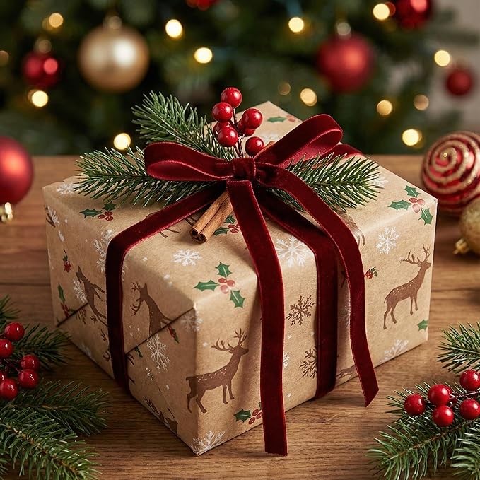 - 【Vintage Christmas Aesthetic】Distressed gold ribbon tails and crushed velvet surface create nostalgic holiday vibes, ideal for traditional/rustic Christmas themes