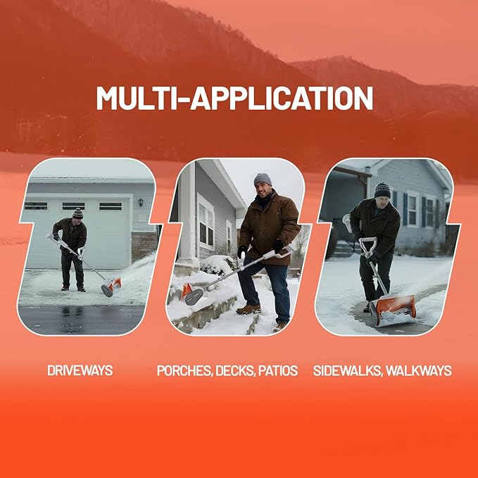 - Fast & Efficient Snow Removal: Clear a 4-car driveway in just 20 minutes with this cordless snow shovel. Perfect for driveways, sidewalks, decks, and patios, it tackles light to moderate snow with ease