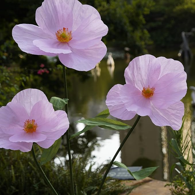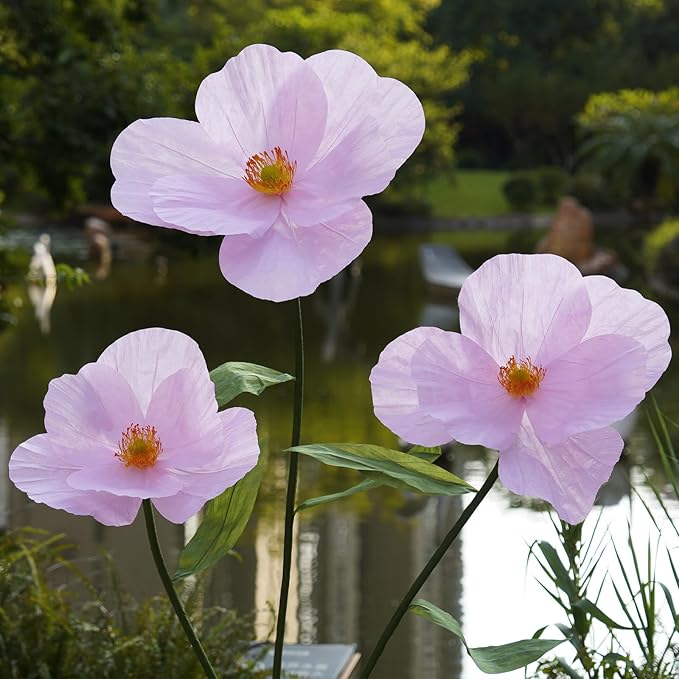 Large Paper Artificial Flowers,Giant Flowers for Decoration,Huge Handcrafted Poppy Fake Flowers with Stand for Home Decor Bridal Shower Party Outdoors Yard Event Backdrop Decor (Pink)
