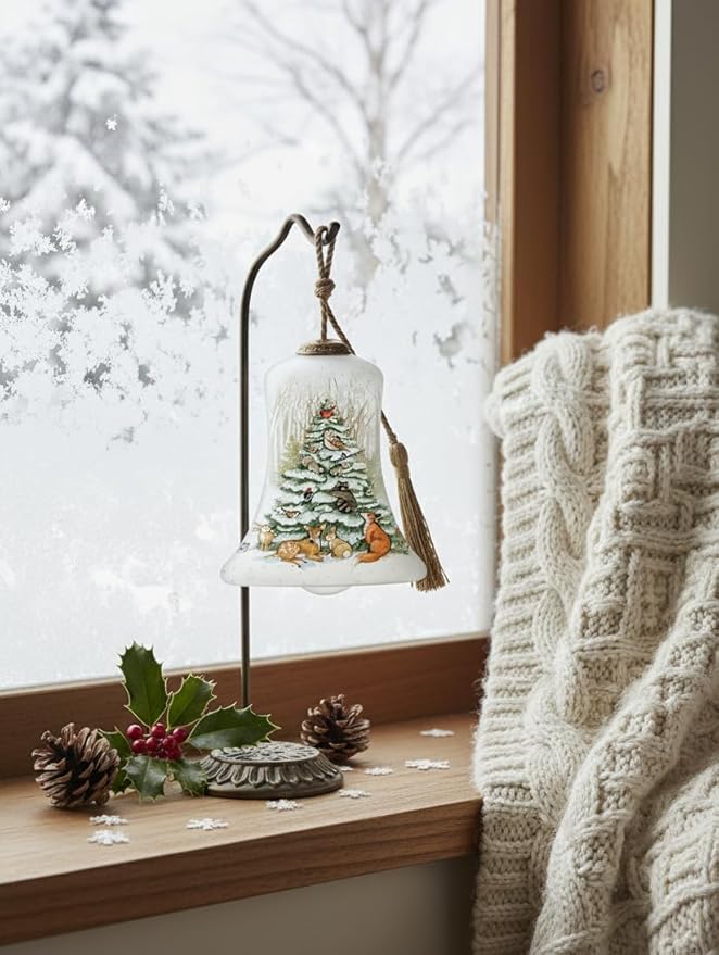 - 【TURN SENTIMENTS INTO ART】 This hand-painted glass bell ornament beautifully captures the wonder of the forest—featuring woodland animals gathered around a snowy evergreen tree. A touching celebration of nature, friendship, and holiday magic.