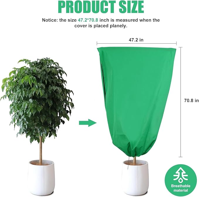 - GOOD BREATHABILITY: The plant freeze protection cover is lightweight and breathable, no stress on plants, and allows air, sunlight and moisture to reach your plants. This blanket jacket let trees breathe smoothly while preserving heat, make your plants against harsh weather and grows normally.