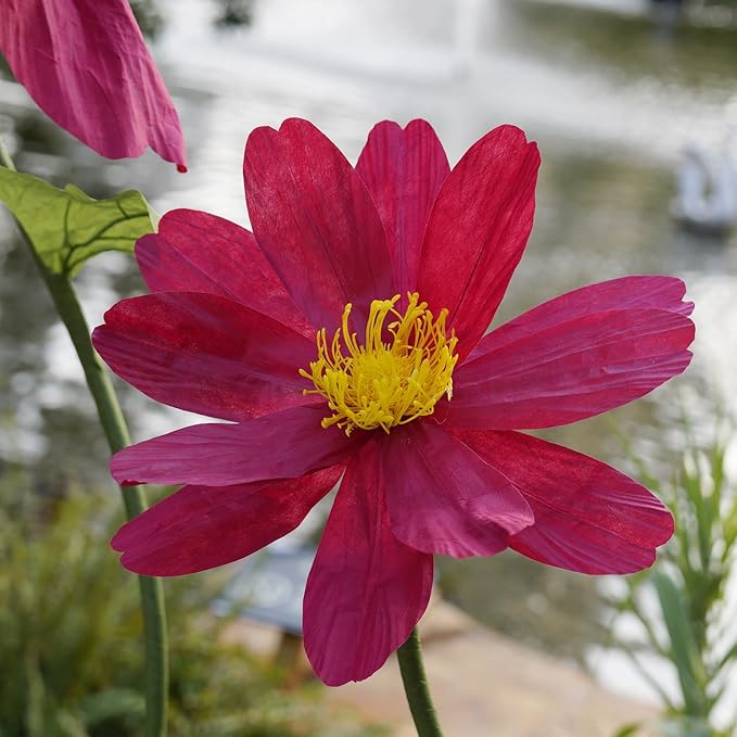 Artificial Giant Flowers for Decoration,Large Paper Daisies Flowers with Stems and Stands Base,Big Flower Decor for Wedding Birthday Party Garden, Party Banquet Background Decor (red)