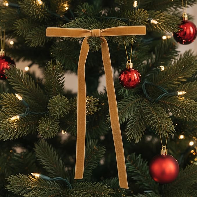 - 【Vintage Christmas Aesthetic】Distressed gold ribbon tails and crushed velvet surface create nostalgic holiday vibes, ideal for traditional/rustic Christmas themes