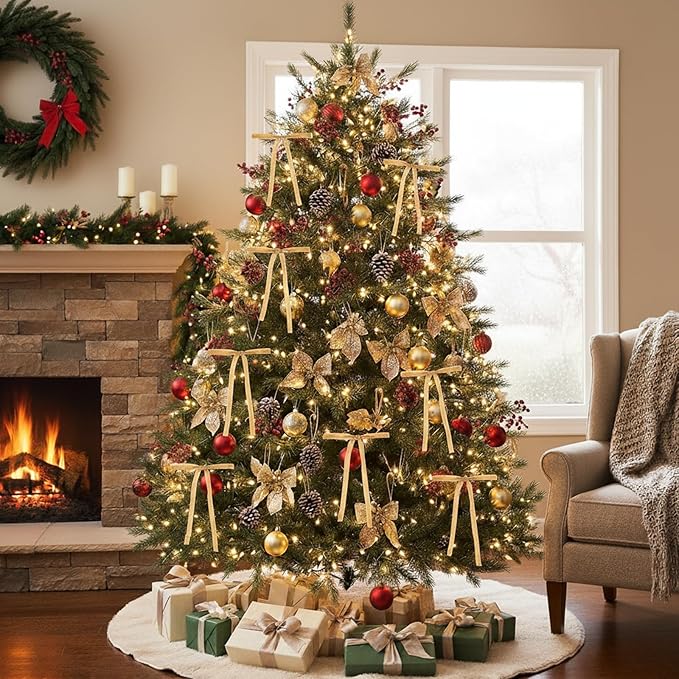 - 【Premium Velvet Material】Crafted with thick velvet fabric and gold wire edges, these Christmas bows maintain perfect shape throughout the holiday season while adding luxurious texture to your decor