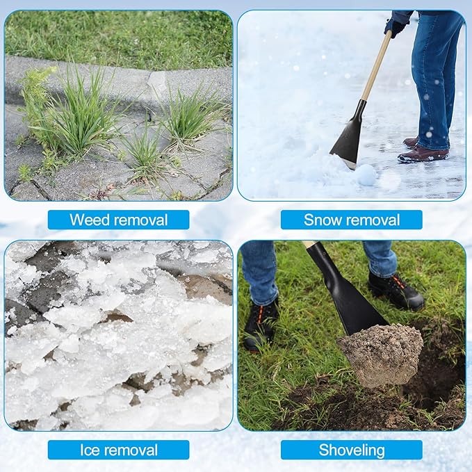 - Wide Range of Applications: suitable for removing ice from driveways, sidewalks, and steps, this versatile ice chopper also clears mud and snow debris, making it ideal for both home and commercial environments; Its sharp edge works well for lawn edging and weed removal, serving year round outdoor maintenance needs