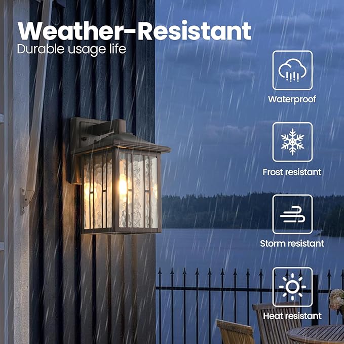 - [Anti-rust and Waterproof IP65]: Outdoor wall lantern is made of high-quality die-cast aluminum, and it is completely weather-resistant and can withstand rain or snow