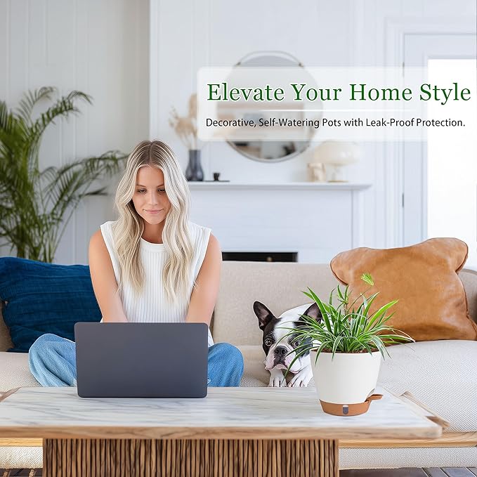 - 🌿 【Self-Watering Planter Pots with Visual Indicator】 Never worry about watering again! These 8/7/6.5/6/5 Inch indoor plant pots with drainage feature a smart self-watering system that keeps soil perfectly moist for up to 7 days. The transparent water level window lets you monitor moisture at a glance—ideal for busy plant lovers or vacations. Perfect as decorative plant pots indoor, they work as reliable houseplant pots for herbs, succulents, and small flowers.