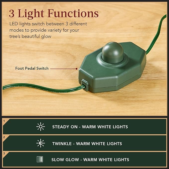 - TWINKLING LIGHT FUNCTIONS: Illuminate your holidays with 3 captivating light modes, including the viral twinkle effect, lighting up your home with holiday magic; Number of lights (4.5ft/6ft/7.5ft/9ft/12ft): 200/250/550/900/1,300/1,800