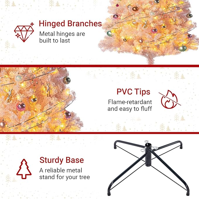 - Natural Lifelike Appeal: The 6ft pink Christmas Tree with 1000 PVC Branch Tips, which are very vivid and beautiful when fully unfolded. You can put this illuminated Christmas tree anywhere, such as the living room, garden, bar, hotel, supermarket or any other place. It is suitable for indoor and outdoor Christmas and halloween decoration.