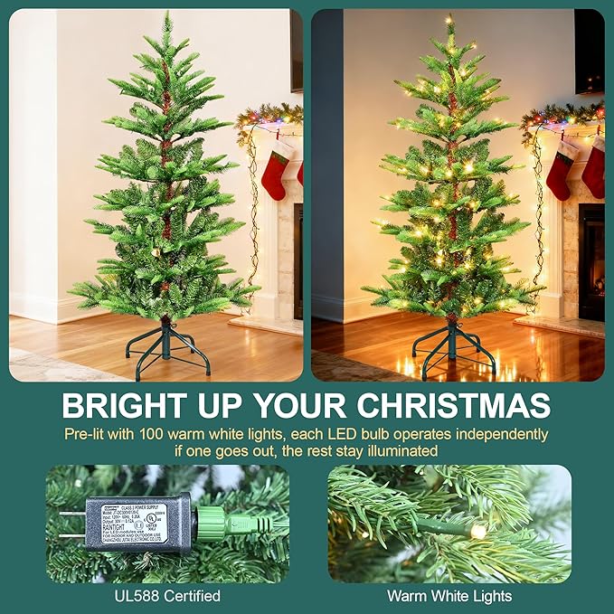 - ๐๐๐ซ๐ ๐๐ข๐ญ ๐ ๐ข๐ซ ๐๐ก๐ซ๐ข๐ฌ๐ญ๐ฆ๐๐ฌ ๐๐ซ๐๐: Transform your space into a glowing holiday haven with this 4 ft prelit Christmas tree wrapped in 100 warm white LEDs. The soft, consistent light captures the magic of Christmas without adding extra decorations. Perfect for homes, offices, or parties, it radiates festive cheer. Unlike many pre lit Christmas trees, it provides a fuller, brighter illumination for lasting beauty.