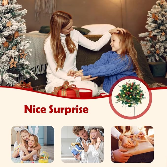 Artificial Christmas Urn Filler with LED Lights, 2026 Upgraded Pre-lit Christmas Tree Planter Filler, Holiday Greenery with Pinecones Berries, Pot Fillers Outdoor Front Porch Xmas Decor (16 in)