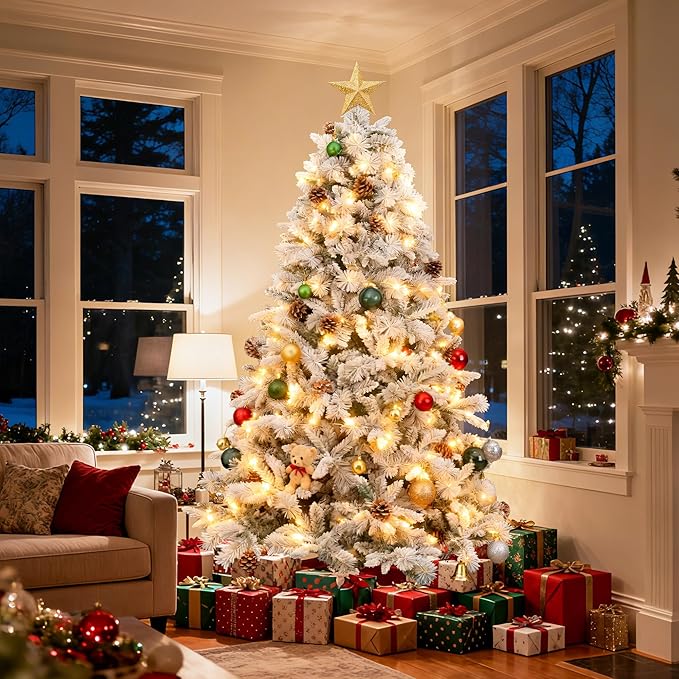 - 【Premium, Safe Materials】Crafted with high-quality fire-retardant PVC, this flocked Christmas tree is odorless, safe for children, and resistant to shedding. Branch tips stay intact, reducing risks of accidental ingestion, making it a great choice for families seeking safe artificial Christmas trees.