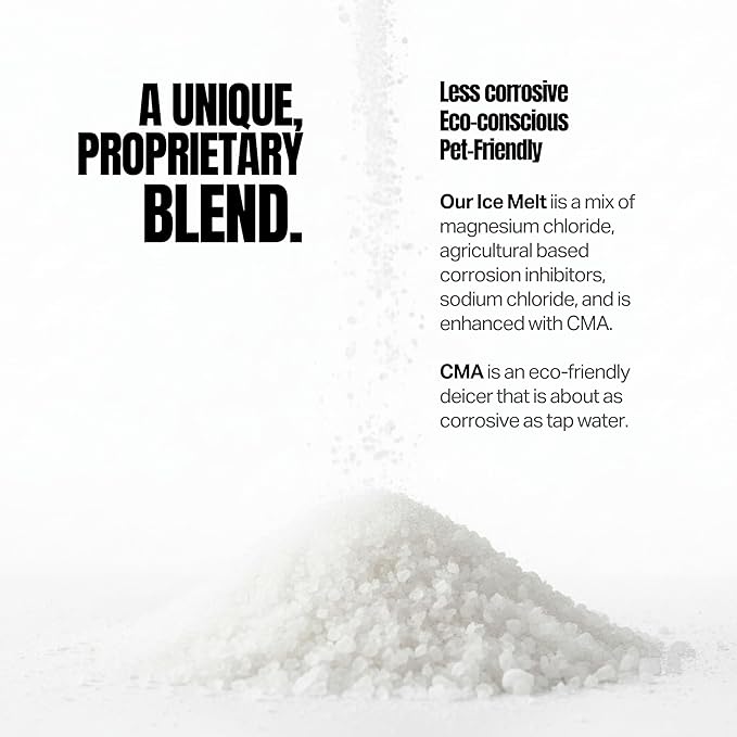 - Enhanced Pet Safe Formula: A specialized blend that delivers the powerful melting capability of traditional de-icers while prioritizing environmental and pet safety. Engineered to perform in extreme cold, it ensures surfaces remain clear and safe even in the lowest temperatures.
